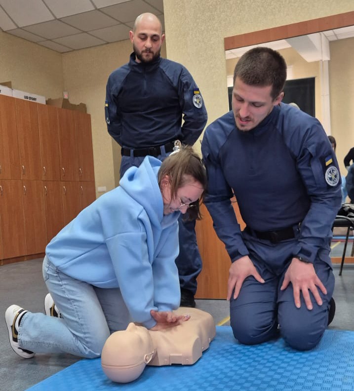 Особливо цінною стала практична частина. Учасники тренінгу мали можливість власноруч відпрацювати серцево-легеневу реанімацію, дії при критичних кровотечах, використання підручних засобів для їх зупинки, а